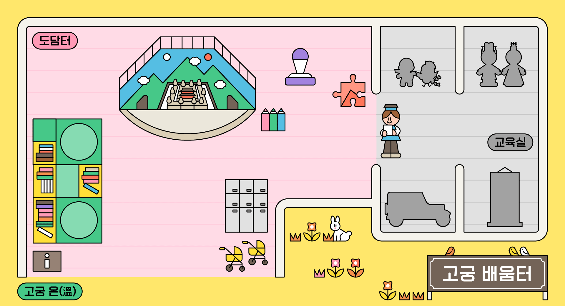 고궁 배움터는 국립고궁박물관 지하 1층에 있으며, 조선 왕실의 문화를 주제로 다양한 교육과 체험활동이 이루어지는 공간입니다. 고궁 배움터에서 성인, 가족, 어린이, 학급 단체, 함께 나눔(특수학급, 지역아동센터)을 대상으로 한 다양한 교육 프로그램이 운영되고 있으니 자세한 사항은 박물관 홈페이지를 참고하시기 바랍니다.