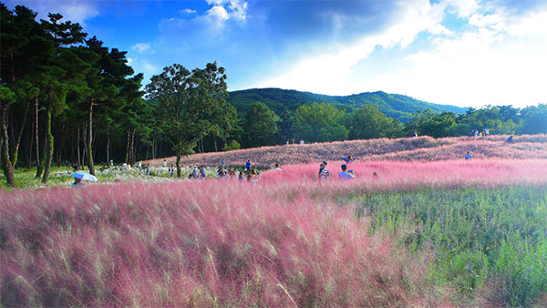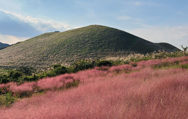 가을 억새로 유명한 새별오름에서 아름다운 핑크뮬리를 즐겨보세요