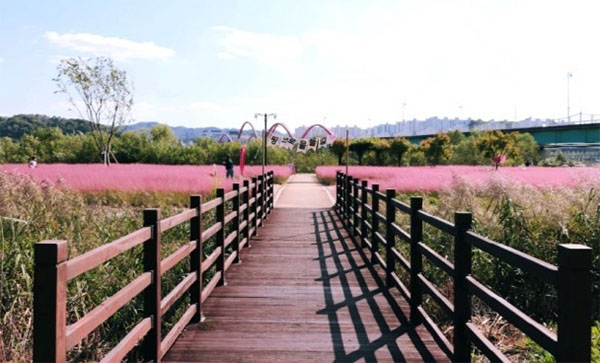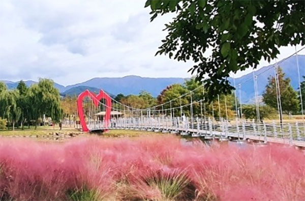 하트 출렁다리를 건너 로맨틱한 핑크빛 가을을 느낄 수 있어요